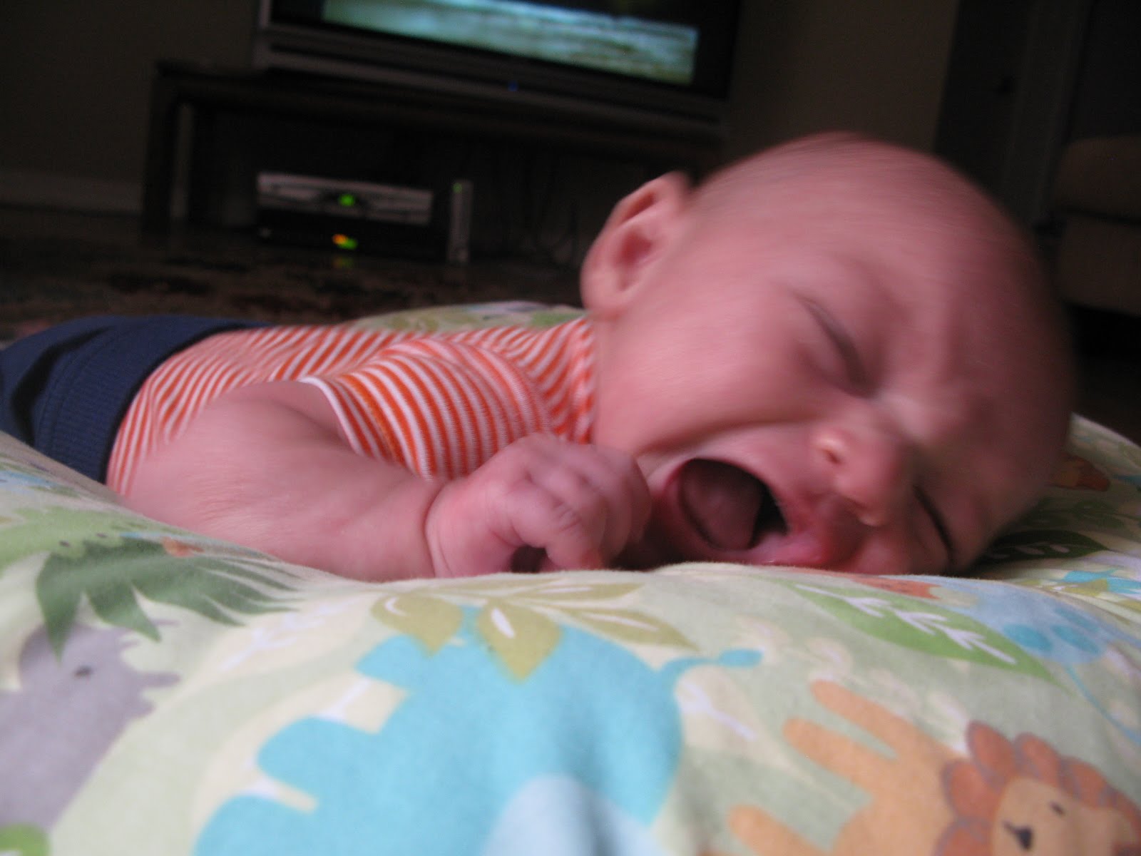 The prediatrician told me Turner should spend about an hour a day on his tummy. At two minutes a pop, we only have to have tummy time THIRTY more times today. I think we'll work our way up slowly!